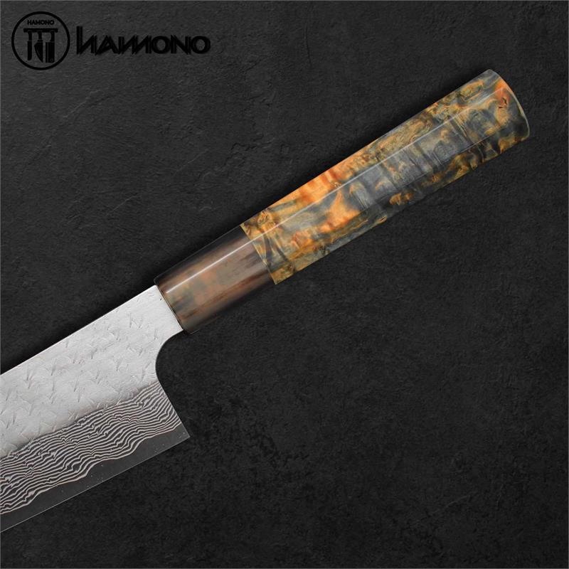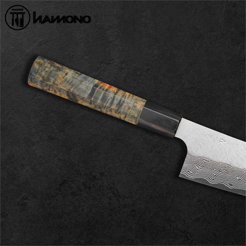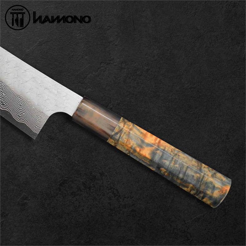 Dao sử dụng thép SPG STRIX của Nigara Hamono không chỉ mạnh mẽ về hiệu suất mà còn là tác phẩm nghệ thuật với họa tiết Damascus tinh xảo, thiết kế lưỡi dao hoàn hảo và độ cân bằng tối ưu. Đây chính là lựa chọn lý tưởng cho những ai đang tìm kiếm một chiếc dao Nhật cao cấp, không chỉ đẹp mà còn có khả năng cắt gọt hoàn hảo, bền bỉ theo thời gian.