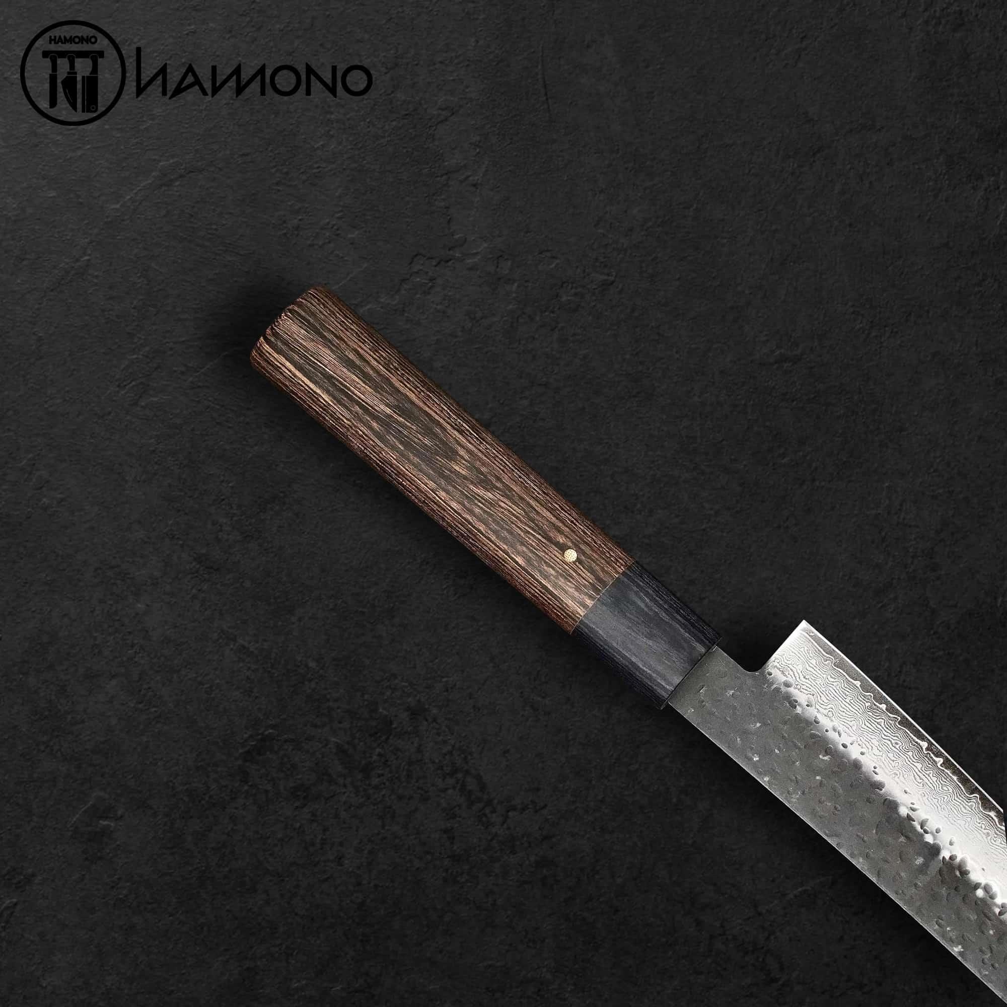 Chất liệu : Lưỡi dao bằng 33 lớp thép Damascus ( lõi VG10 độ cứng HRC 60 - 62)