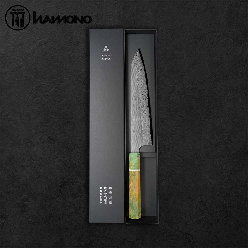 Dao Gyuto Nigara 210mm Thép VG XEOS Cán Dyed Stabilized (LIMITED)