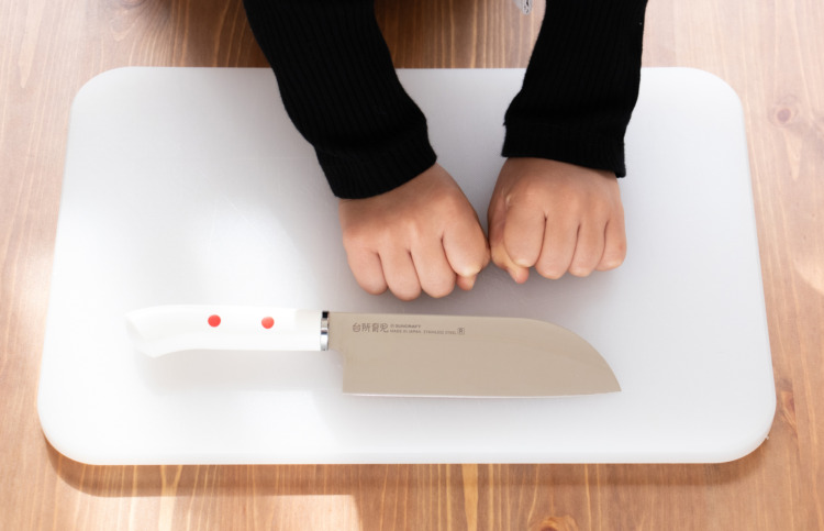 Trước khi đưa dao cho trẻ, người lớn trước tiên nên làm mẫu để cho trẻ học và làm theo. Khi hướng dẫn hãy thử sử dụng dao dành cho trẻ em. Dao dành cho trẻ em, được sản xuất với mục đích an toàn, thường khác với dao thông thường về cảm giác khi sử dụng. Ngay cả người lớn cũng có thể hiểu được đặc điểm của dao dành cho trẻ em khi thực tế sử dụng chúng.