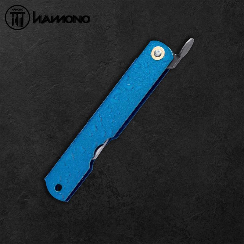 Higonokami Folding Knife Aogami Steel Clad Mizushibuki Blue